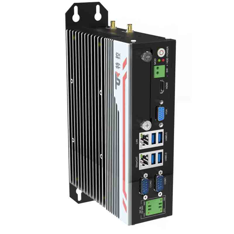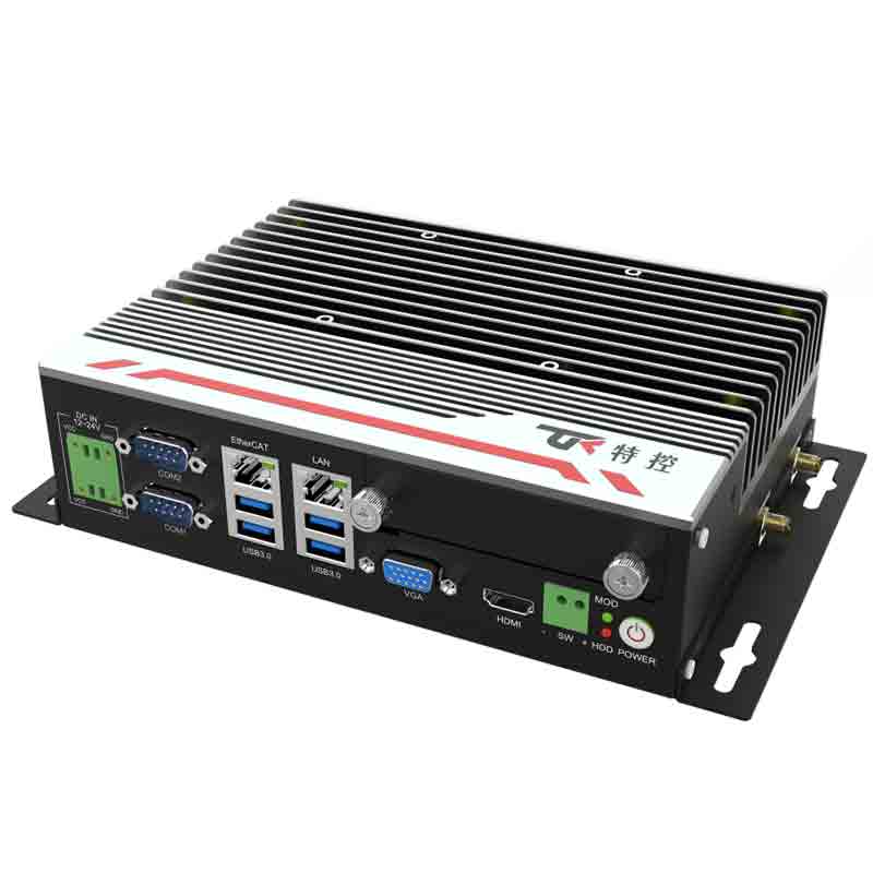 穩定可靠:純工業無風扇設計,強勁解熱熱管與純銅一體化的優良散熱結構,全密封鋁合金箱體,大面積鋁鰭散熱,可實現橫向與豎向等多種放置的自然對流散熱,機箱可抗接觸式4KV強電磁干擾,DC12V-24V寬壓輸入